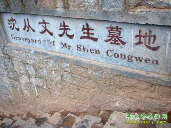 從古城的東門城樓外的虹橋前沿江下行3華里路程,到得聽濤山,從山道向右拾階而上,不遠處便能看見一塊石碑,上寫“沈從文墓地”5個遒勁大字。再不遠處置有一塊豎長的石碑,上面刻有畫家黃永玉為表叔沈從文題寫的碑文:“一個士兵不是戰(zhàn)死沙場,便是回到故鄉(xiāng)。”墓地建在一塊狹長的小草坪上,沒有墳冢,只樹有一塊6噸多重的天然五彩石,成為沈從文墓獨特的標志。石正面鐫刻的是沈從文富有哲學內涵的手跡:“照我思索,能理解我;照我思索,可認識人。”石背面是沈從文的姨妹、美國耶魯大學教授張充和撰書,沈從文侄女婿、中央美術學院著名雕塑家劉煥素教授鐫刻的挽聯(lián):“不折不從,星斗其文;亦慈亦讓,赤子其人。”其聯(lián)句尾四字:“從文讓人”透射出先生一生的高風亮德。沈從文墓地清幽靜謐,四周綠樹環(huán)抱,墓地上和四周的草坪上擺放著無數(shù)的野花和竹編的一些蝴蝶,這些都是前來膜拜的旅人們留下的。