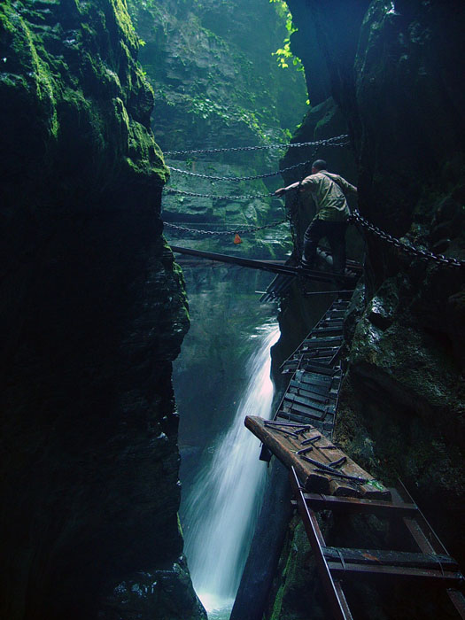 坐龍峽擁有中國第一條特種游道。所有游道均建于峽谷深處,依山取勢,既經(jīng)細(xì)心雕琢聽卻又渾然天成。粗樸的板栗木棧道,可以讓你零距離的親近那一潭碧幽、聽聞山泉叮咚;精巧的跳墩,可以讓你媳戲流泉、觸感溪瀑;原質(zhì)的石坎道,讓你不得不調(diào)動全部的身心能量悉心攀援、感悟峽谷;有驚無險的鐵梯,讓你伴著腳下轟鳴的溪水,在驚怵中體味一份快慰。 出口出的土家山寨,保留了古樸獨(dú)特的生活習(xí)俗。一塊臘肉就一口醇香的“苞谷燒”會讓你洗去所有的疲憊,在輕松中憨厚的主人向你講述過去強(qiáng)人出沒的故事