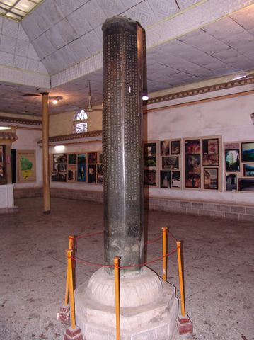 彭士愁戰(zhàn)敗后于后晉天福五年(公元940年)與馬希范議和,把戰(zhàn)爭的經(jīng)過和議和的條款,鐫刻于銅柱之上。銅柱重五千斤,高丈二尺,入土六心,形為八面,中空,內(nèi)實(shí)鉅錢,柱端覆蓋銅頂,銘誓狀于銅柱之上,立于會溪,宋天禧二年(公元1018年)重立時,又羼刻了一些土官銜名。清中葉,柱上銅頂被盜,沉于江心,柱內(nèi)銅錢亦被人以飴粘錢殆盡。清光緒十一年(公元1885年),永順府知府張曾揚(yáng)建亭保護(hù)。民國年間亭被毀。”銅柱的銅質(zhì),精純光潤;八面所鐫顏、柳體陰文,雖經(jīng)千載風(fēng)雨洗刷,霜雪蝕磨,仍清晰如初。溪州銅柱是研究土家族古代歷史的重要文獻(xiàn)。土家族視銅柱為神物。