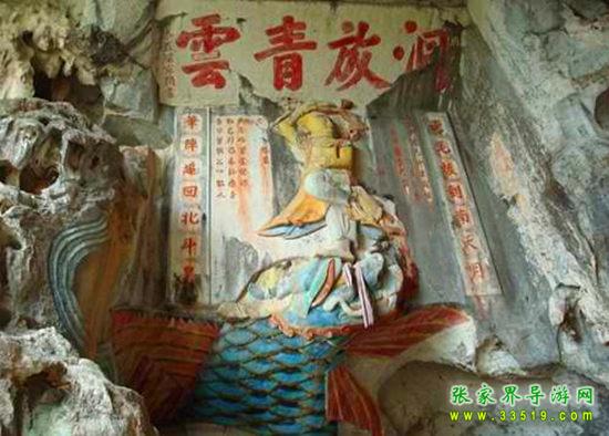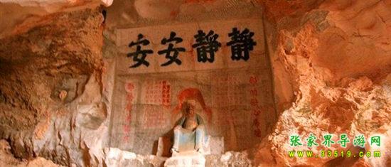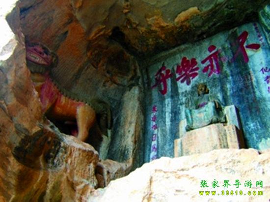 玉皇洞石窟位于張家界城西約7公里的麻空山南壁,為清代本地鄉(xiāng)紳李京開(kāi)獨(dú)資捐修。李京開(kāi)又叫李五瑞,別名九洞樂(lè),號(hào)識(shí)破生。他生于乾隆七年(公元1742年),道光乙酉年(1825年)去世,享年83歲。李先生家道殷實(shí),富甲一方。少時(shí)勤奮讀書,頗有才華,數(shù)十年奔波仕途,但屢試不第,官場(chǎng)無(wú)望,于是看破紅塵,另尋安慰,請(qǐng)工匠,耗巨資,憑借麻空山天然溶洞,按上、中、下方位布局,巧妙構(gòu)思,開(kāi)鑿成“天堂”、“人間”、“地府”三層共八個(gè)洞。另外,在離此約3公里的峰泉洞另鑿一洞,故有“九洞樂(lè)”別名。玉皇洞石窟上層為玉皇洞,人間層有玉金洞、毫筆洞、墨池洞、虎龍洞、雄獅洞、孔圣洞,地府為因果洞,八洞組成一個(gè)完整的混沌世界。居八洞之首的玉皇洞,雕有玉皇大帝神像,意為“天堂”至尊,統(tǒng)帥中層的“人間”和下層的“地府”,故八洞統(tǒng)稱玉皇洞。此洞于1799年動(dòng)工,到1807年完成,歷時(shí)八年。洞內(nèi)雕鑿了一些歷史人物的神像以及大量詩(shī)詞匾對(duì),不僅石雕精湛獨(dú)特,雕像神韻生動(dòng),書法遒勁大氣,而且在石窟藝術(shù)的主題構(gòu)思上,抒發(fā)了主持捐修者李京開(kāi)懷才不遇、憤世疾俗、向往太平盛世的情感,鞭達(dá)了腐朽的科舉制度,對(duì)于研究清代社會(huì)和科舉制度,以及當(dāng)時(shí)一般讀書人的思想情感,都具有一定的史料價(jià)值。整座洞窟東西長(zhǎng)300余米,現(xiàn)存石像19尊,石刻50多處,是湖南省唯一保存完好的石窟藝術(shù)群,1959年玉皇洞被列入湖南省重點(diǎn)文物保護(hù)單位。