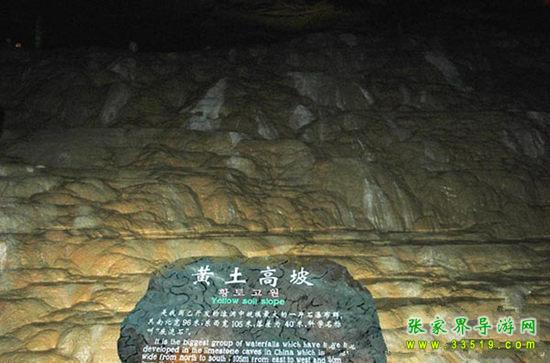 我們現在來到了黃龍洞最寬的大廳——南北寬達96米的天仙宮。天仙宮有洞內最大的石瀑布群,南北寬62米,東西寬105米,落差達40米。人們給它取了一個很生動形象的名字——黃土高坡?;蛟S您已經看到了,黃土高坡上面竟然生長有植物!真是“洞中乾坤大”??!它們是簡單的蕨類植物。它們?yōu)槭裁茨軌蛟谶@兒生長呢?這主要因為光合作用,是日光燈神奇的力量喚醒了它們的生命之夢。