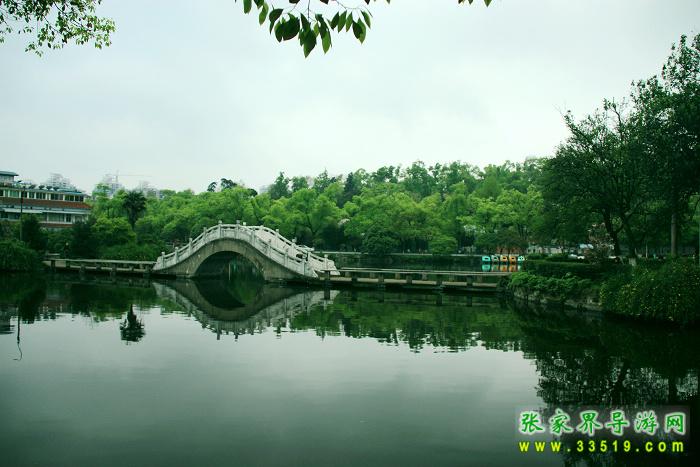 岳屏山下的原江西會館舊址,改建成為博物館,內(nèi)有王夫子專館和古物商店,龍年龍展,更是令人矚目。和博物館為鄰的是花圃,四時八節(jié),有花卉幽蘭供人觀賞。同博物館只有一條馬路之隔的人工湖,是在大灣塘的基礎(chǔ)上疏鑿而成的,有一潭名云水池,繞池有一條環(huán)行小路,北有湖心亭,亭和湖心島之間有仿頤和園玉帶橋相聯(lián),人們可以在湖島上戲游和小憩。過曲橋、繞回廊,便是類似西湖平湖秋月形的亭榭,上有吊腳茶亭,亭上有楹聯(lián):"云岫蒼??叭?a class="insidelink" href="http://www.shengyuwood.com/Scenic/ZJJJQ/09291321189.html" title="畫">畫,水波蕩漾自成文.此聯(lián)深入淺出,有雅俗共賞之妙。"