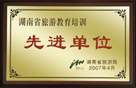 2007旅游教育培訓(xùn)先進單位 湖南省旅游局(2007.4)