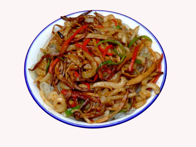 《張家界草帽面》。 這個名字的由來是因?yàn)槔习宄D甏髦菝辟u面,臊子非常香,可以添加,面是他自己加工的據(jù)說是全手工的,老板人很古怪,每天只賣那么一點(diǎn),以前更古怪,只有星期1、3、5的晚上9點(diǎn)才有賣,想吃他家的草帽面居然還得跟他打電話問他是否心情好,出不出來賣面?預(yù)約了才不會撲空。但是就因?yàn)檫@點(diǎn)神秘,所以他家的面有些神話色彩。在汽車站口百貨大樓東門對面的巷子口,一輛板車上面掛了一頂草帽,那就是了,不過每天下午1點(diǎn)左右就沒了,要吃啊,嘿嘿,您趕早!能不能吃的上,得看您造化咯!