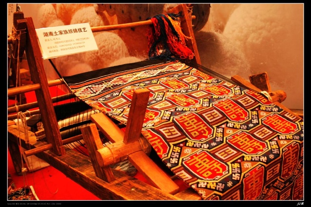 土家織錦的歷史悠久。早在漢代,它就初露頭角?!逗鬂h書(shū).西南蠻夷傳》記載,“武陵蠻織績(jī)木皮,染以草,衣裳斑斕……”清同治年間編修的《永定縣志》也說(shuō):“土錦績(jī)五顏經(jīng)線為之,文彩斑斕可愛(ài),使用以為被,或作衣裙,或作巾,故又稱‘筒巾’。”
