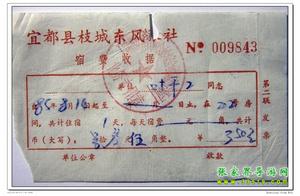 8月14日下午3時(shí),乘坐一輛很破舊的長(zhǎng)途車(chē),約3小時(shí)顛簸到達(dá)宜都枝城鎮(zhèn),即那時(shí)通車(chē)不久的枝柳鐵路起點(diǎn),每人2.3元。車(chē)票上還印著“最高指示”。
